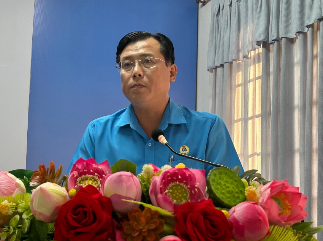 Phó Chủ tịch LĐLĐ tỉnh Nguyễn Nhật Tiến phát biểu kết luận tại hội nghị
