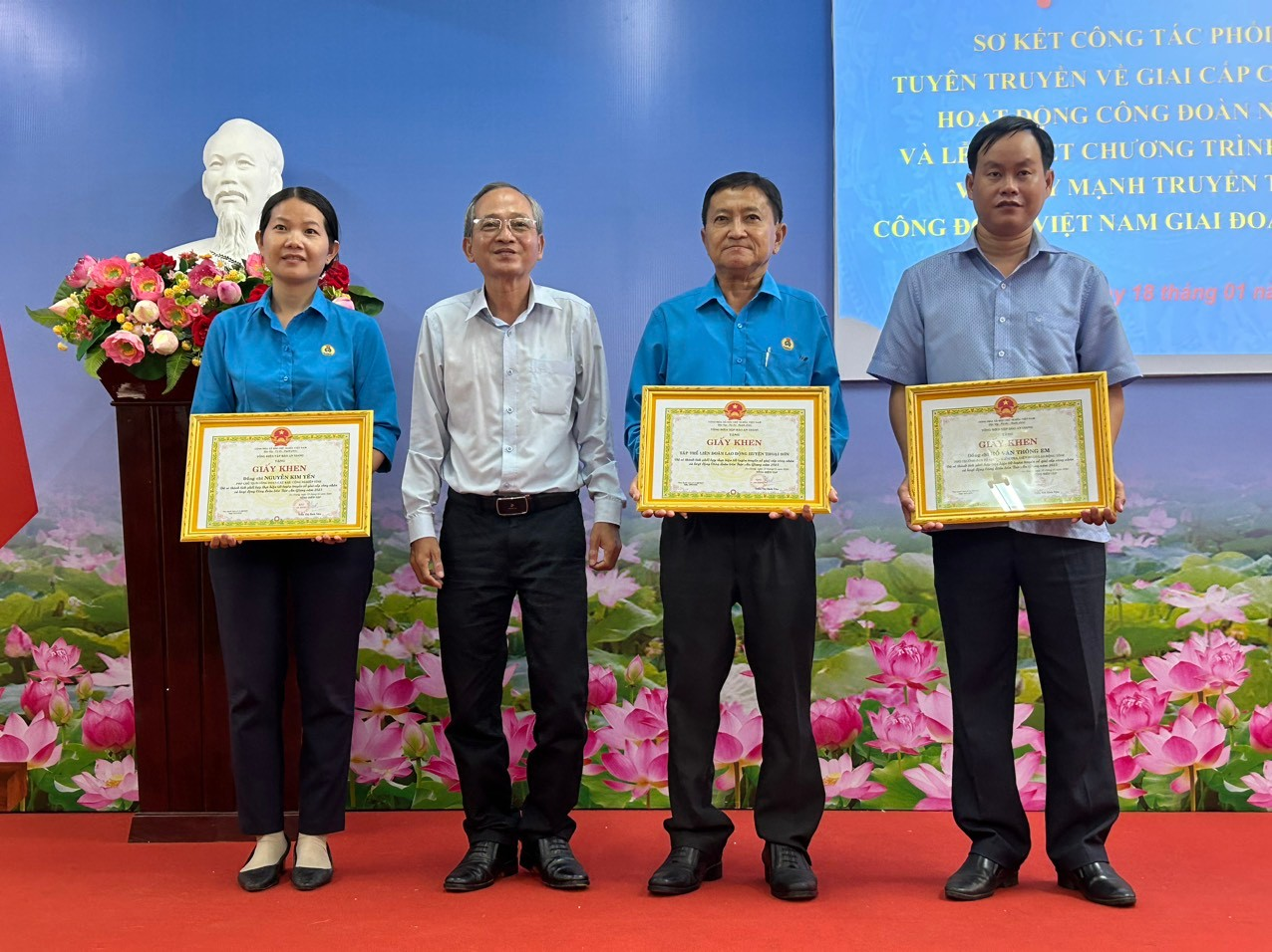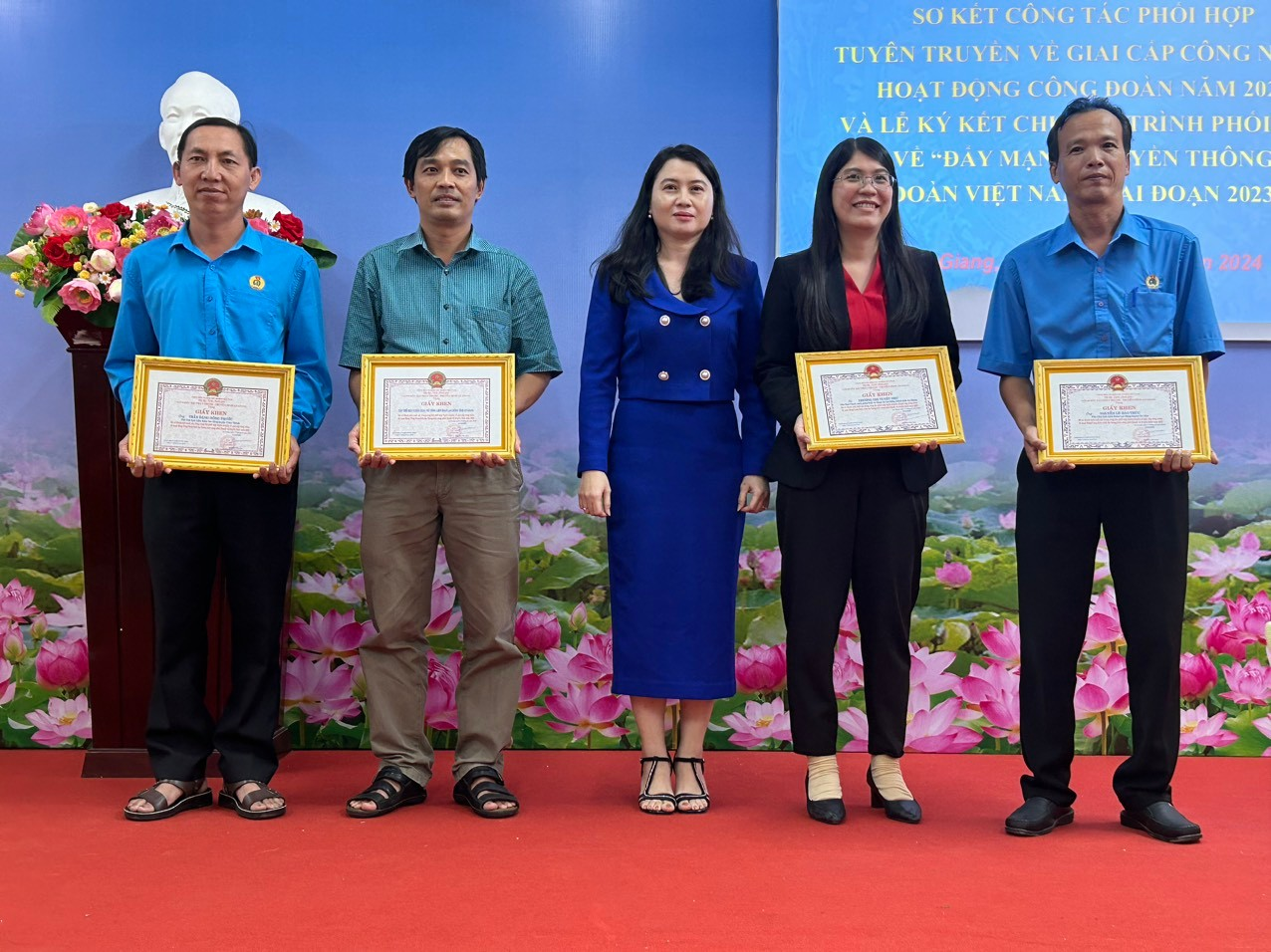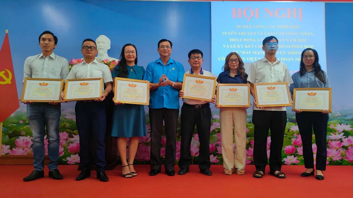 Dịp này, các cơ quan phối hợp đã tổ chức khen thưởng động viên 04 tập thể, 13 cá nhân có nhiều đóng góp tích cực cho chương trình phối hợp tuyên truyền về giai cấp công nhân và hoạt động Công đoàn năm 2023./.