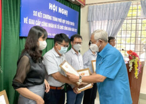 Đồng chí Nguyễn Thiện Phú Chủ tịch LĐLĐ tỉnh (nay nghỉ hưu) trao tặng Bằng khen cho các đơn vị, các phóng viên làm tốt công tác truyền thông công đoàn