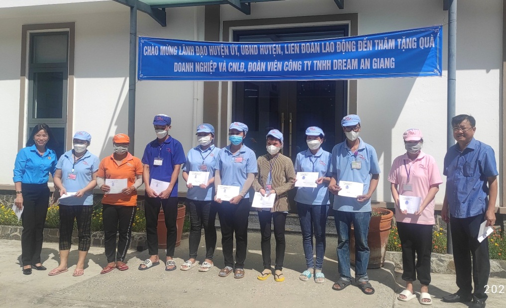 Đại diện Công ty TNHH Dream An Giang và công nhân đã cảm ơn đoàn huyện đã đến thăm hỏi, động viên, trao đổi tình hình và nắm bắt tâm tư, nguyện vọng của doanh nghiệp và người lao động.