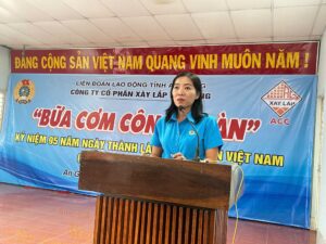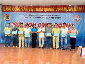 Công ty cổ phần xây lắp An Giang là đơn vị không tổ chức bữa ăn ca hàng ngày, tuy nhiên trên tinh thần phát động chương trình “Bữa cơm công đoàn” của Tổng Liên đoàn, thì Ban Giám đốc công ty đã đồng tình hưởng ứng, phối hợp với LĐLĐ tỉnh và công đoàn cơ sở tổ chức bữa cơm cho đoàn viên, người lao động với suất ăn 75.000 đồng gồm các món: canh ngót, thịt kho trứng, tôm xào ngòng tỏi và tráng miệng trái cây và sửa chua.