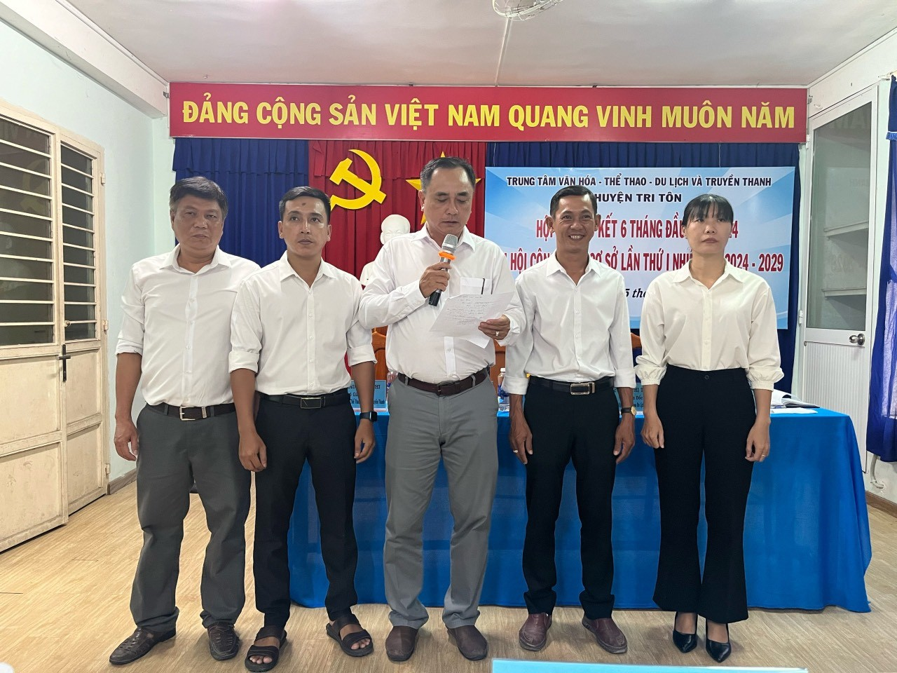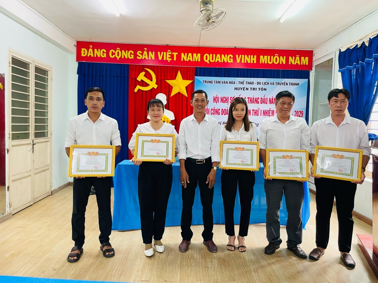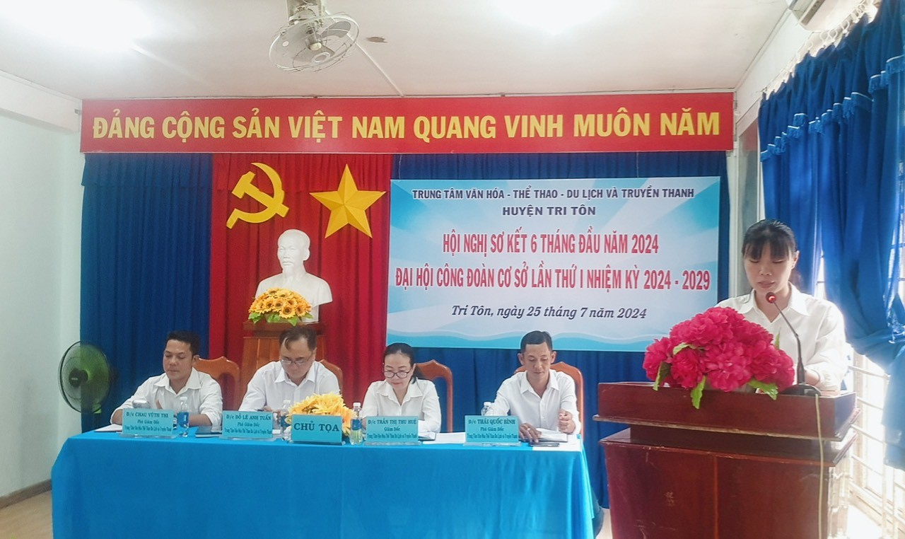 CĐCS Trung tâm Văn hóa – Thể thao – Du lịch và Truyền thanh huyện Tri Tôn được thành lập trên cơ sở hợp nhất CĐCS Đài Truyền thanh và CĐCS Trung tâm Văn hóa – Thể thao và Du lịch huyện. Theo đó, Công đoàn cơ sở Trung tâm Văn hóa Thể thao Du lịch và truyền thanh Tri Tôn đi vào hoạt động từ tháng 1/2024, với 39 đoàn viên.
