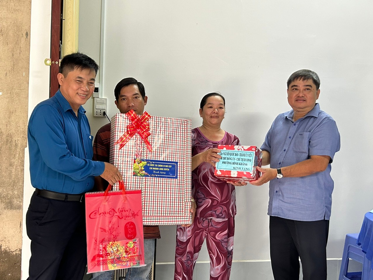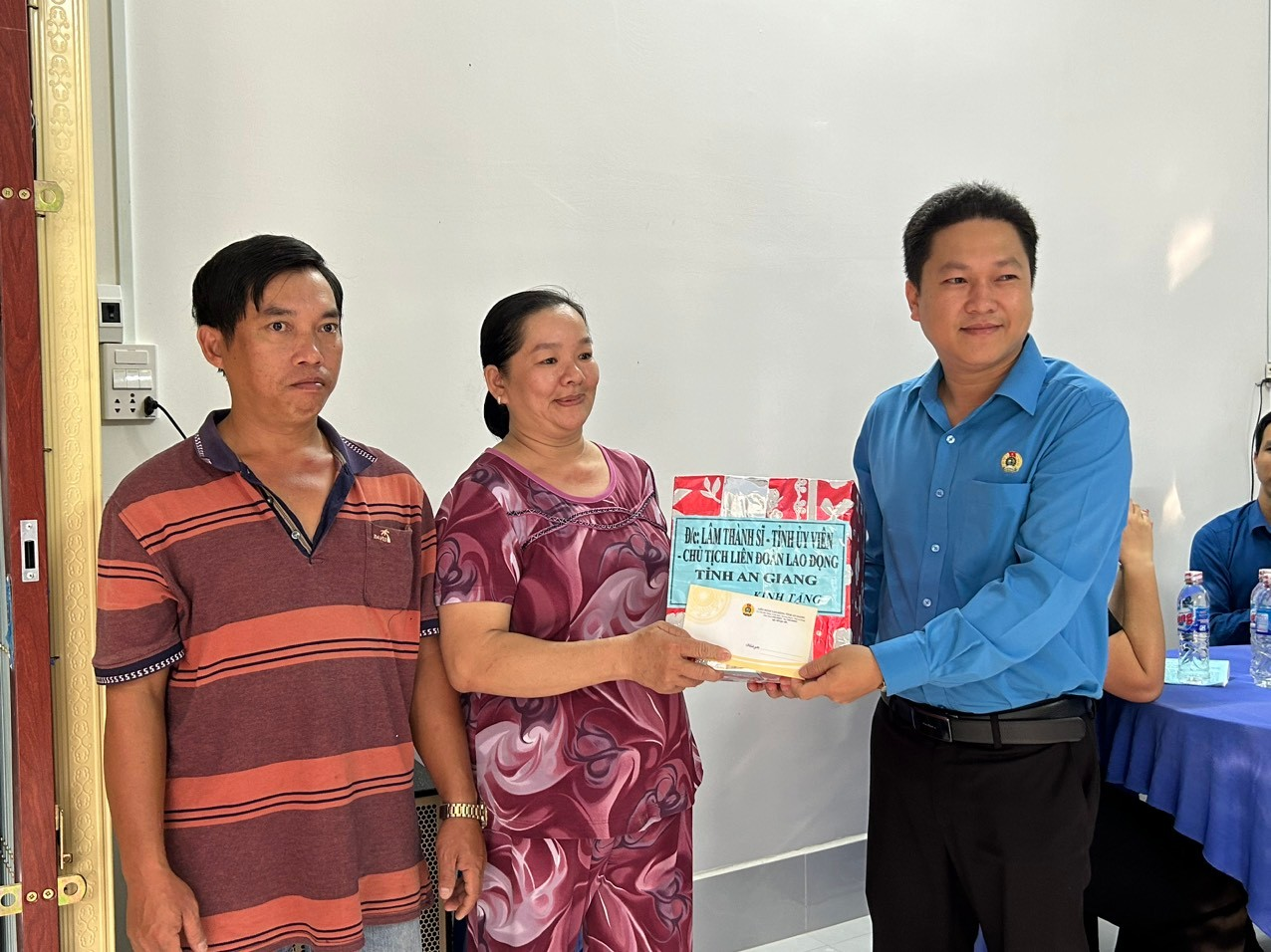 Đi cùng Đoàn có đồng chí Lâm Thành Sĩ, Tỉnh uỷ viên, Chủ tịch LĐLĐ tỉnh, đồng chí Đặng Thị Hoa Rây, Uỷ viên Thường vụ Tỉnh uỷ, Bí thư Thành uỷ thành phố Long Xuyên và lãnh đạo Đảng uỷ, Uỷ ban nhân dân, Công an phường Bình Khánh, thành phố Long Xuyên.