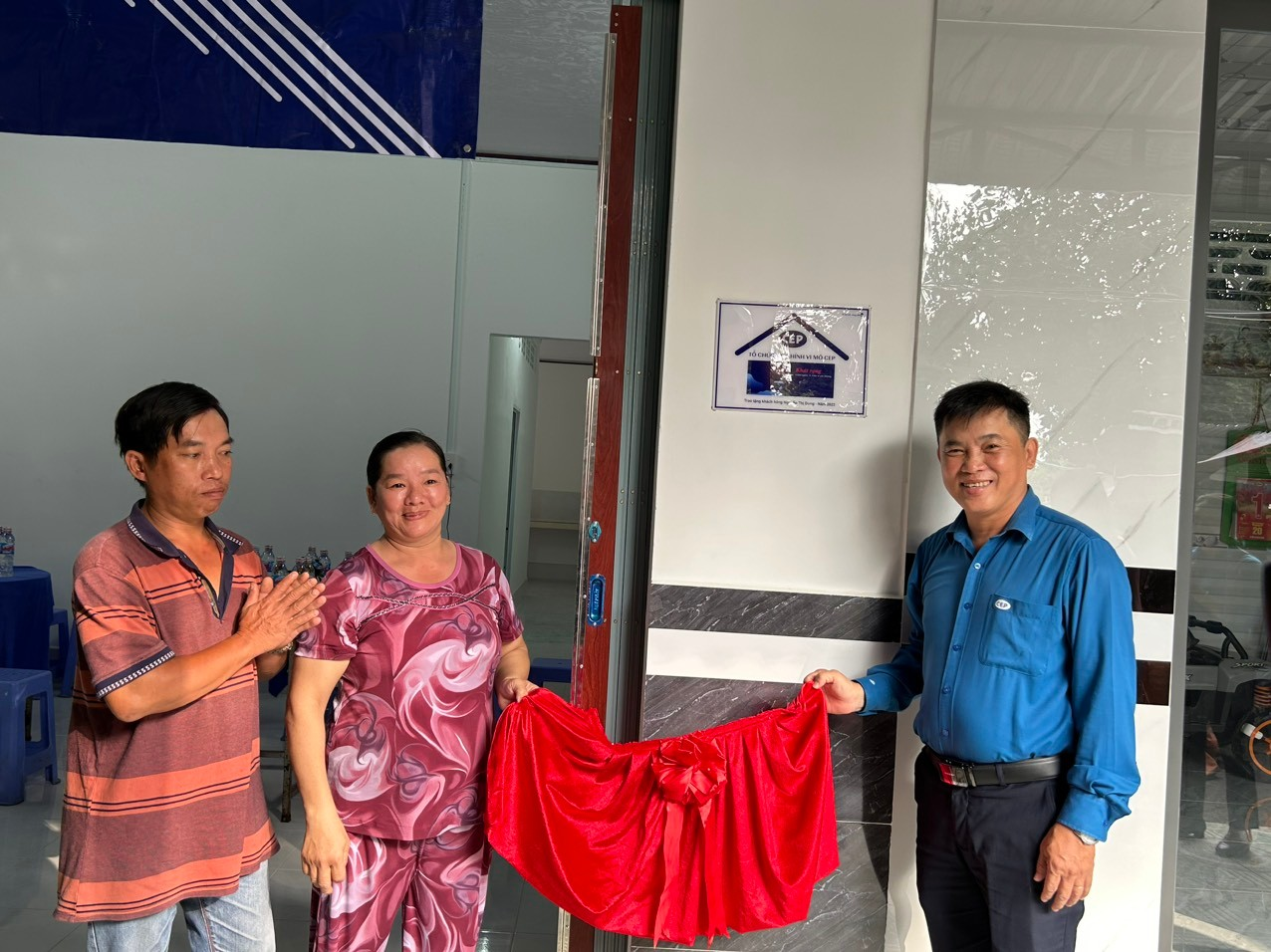 Tại đây, đồng chí Phan Công Trực cùng lãnh đạo Đảng uỷ, Uỷ ban nhân dân phường Bình Khánh đã bàn giao căn nhà cho chị Dung, với diện tích 55,56m2, nền lót gạch men, khung bê tông, cốt thép, mái lợp tôn, được thiết kế 02 phòng ngủ, 01 gian khách và 01 gian nhà bếp, có nhà vệ sinh. Tổng chi phí xây dựng trên 110 triệu đồng, trong đó CEP hỗ trợ 70 triệu đồng, còn lại gia đình và người thân hỗ trợ.