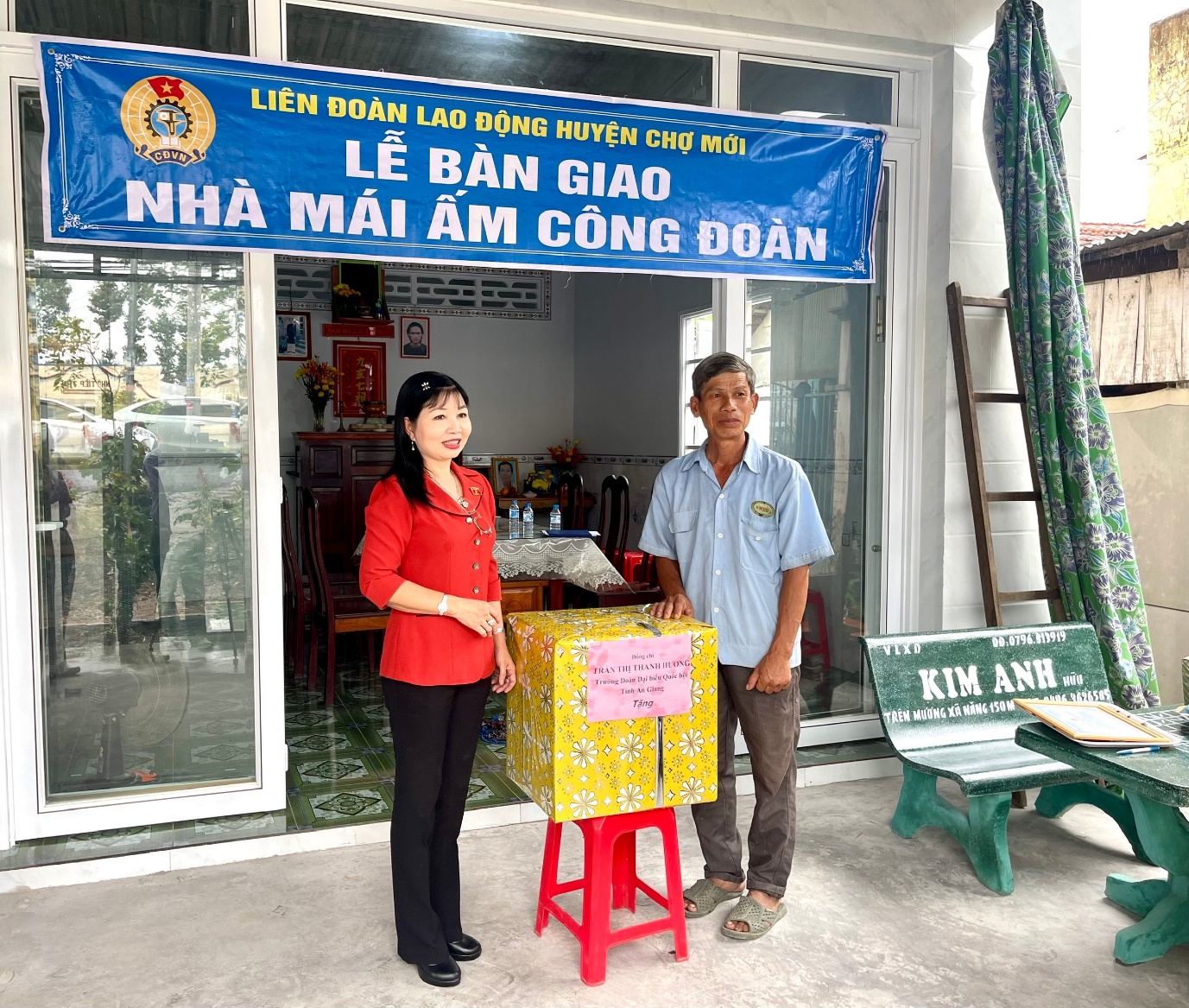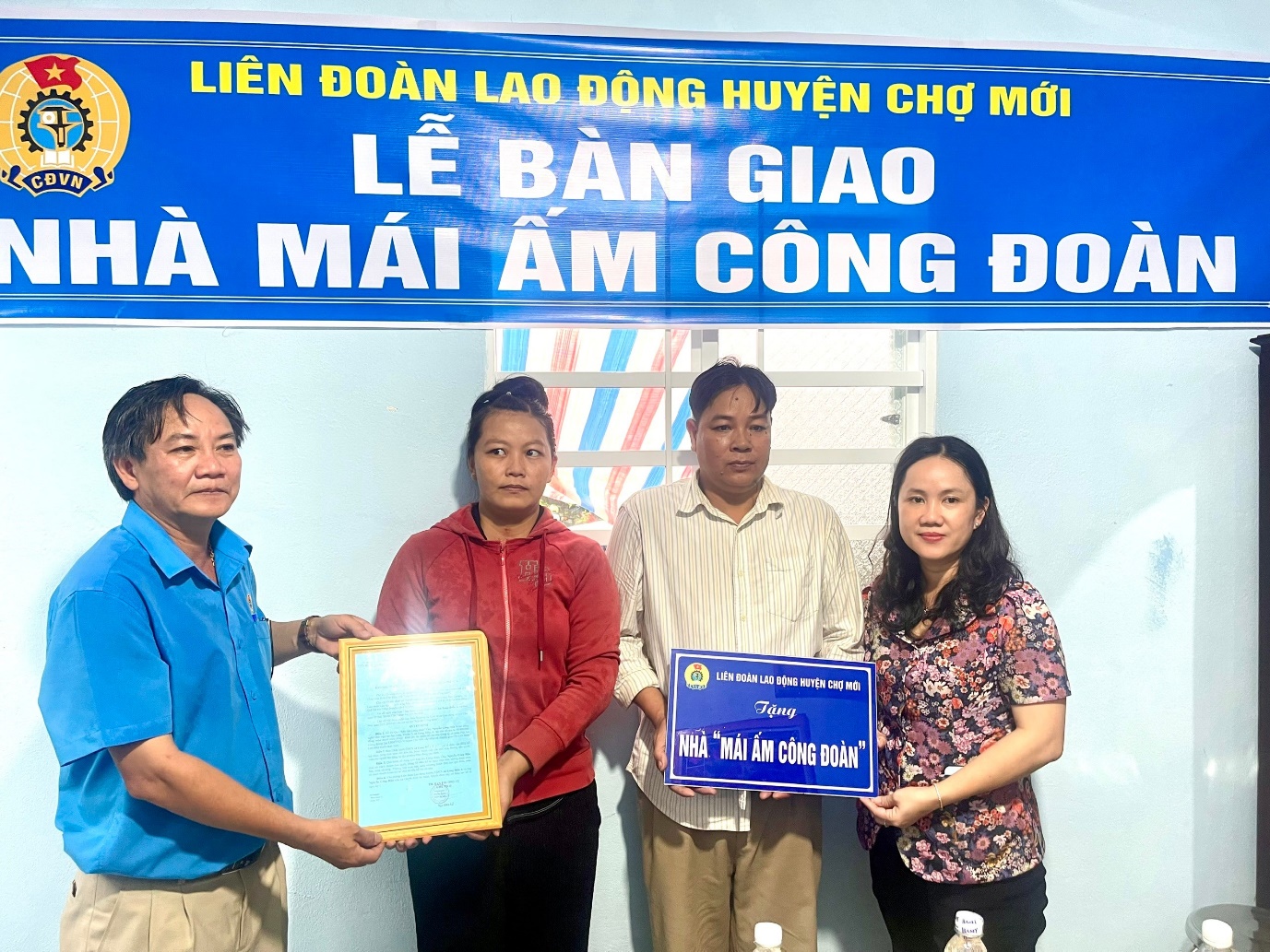 Phát biểu tại buổi bàn giao nhà, đồng chí Trần Thị Thanh Hương, UV BTVTU, Trưởng Ban Tuyên giáo Tỉnh ủy, Trưởng đoàn Đại biểu Quốc hội tỉnh An Giang, lãnh đạo LĐLĐ tỉnh, Huyện ủy Chợ Mới chúc mừng gia đình hai đoàn viên có căn nhà mới để ổn định cuộc sống, mong muốn gia đình tiếp tục phấn đấu tu sửa, trang trí cho ngôi nhà ngày càng khang trang, sạch, đẹp; các đoàn viên và gia đình yên tâm lao động và công tác, hoàn thành tốt các công việc được giao.