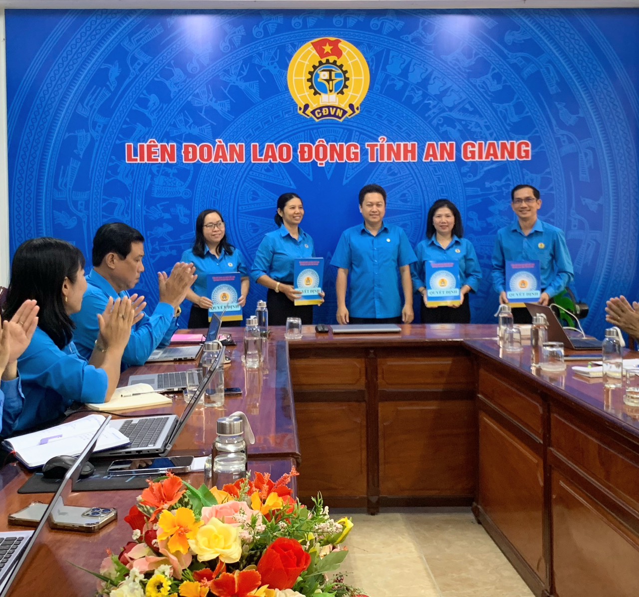 Sáng 29/7, Ban Thường vụ Liên đoàn Lao động tỉnh tổ chức Lễ công bố, trao quyết định điều động 04 cán bộ thuộc cơ quan LĐLĐ tỉnh.