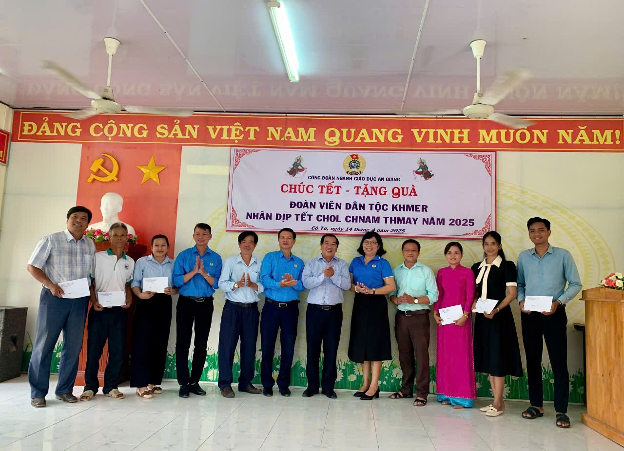 Thể hiện sự quan tâm, chăm lo, động viên tinh thần đoàn viên dân tộc Khmer nhân dịp tết Chol Chnam Thmay năm 2025; đồng thời, khích lệ đoàn viên phấn đấu hoàn thành tốt nhiệm vụ được giao. Ngày 14/4/2025, Công đoàn ngành Giáo dục phối hợp với Sở Giáo dục và Đào tạo tổ chức Đoàn đến chúc Tết Chol Chnam Thmay cho các Trường Dân tộc nội trú và đoàn viên người dân tộc Khmer của các đơn vị trực thuộc Công đoàn ngành. Tham gia Đoàn có đồng chí Võ Bình Thư, Phó Giám đốc Sở Giáo dục và Đào tạo và đồng chí Nguyễn Chí Sơn, UVBTV Liên đoàn Lao động tỉnh, Chủ tịch Công đoàn ngành Giáo dục và một số đồng chí trong Ban Thường vụ Công đoàn ngành.