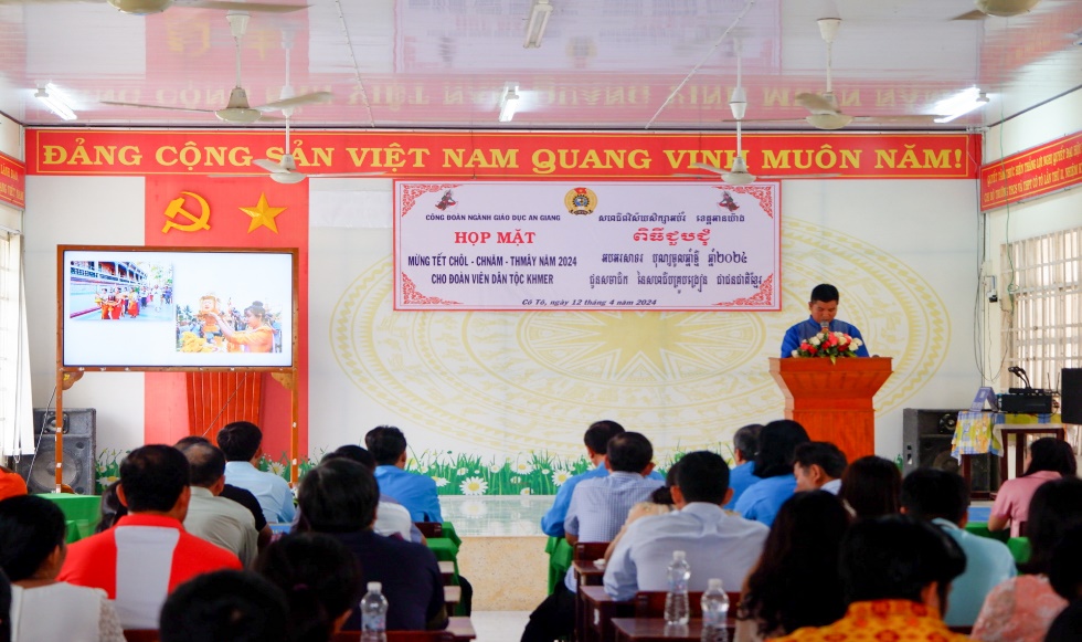 Nhân dịp Tết Chôl Chnăm Thmây, tại Trường THCS và THPT Cô Tô, huyện Tri Tôn, chiều ngày 12/4 Công đoàn ngành Giáo dục tổ chức buổi họp mặt, tặng quà cho đoàn viên dân tộc Khmer thuộc các trường lân cận trên địa bàn.