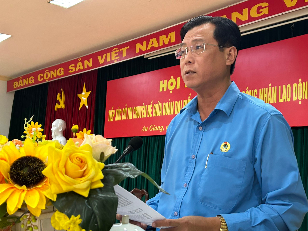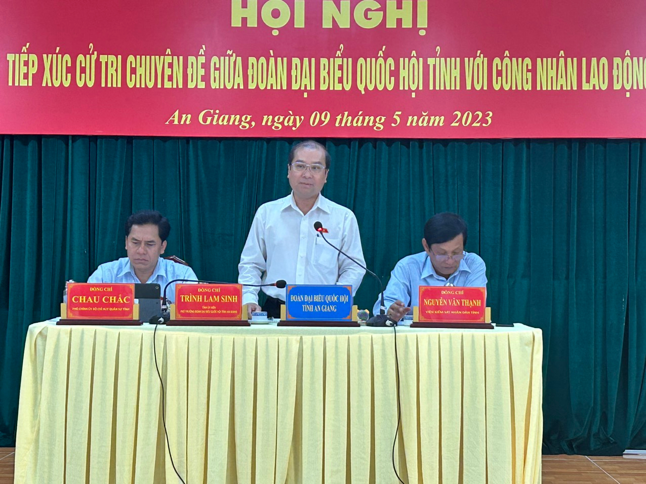 Vừa qua, tại Hội trường Cơ quan Liên đoàn Lao động tỉnh, Liên đoàn Lao động tỉnh An Giang phối hợp Đoàn Đại biểu Quốc hội tỉnh tổ chức Hội nghị tiếp xúc cử tri chuyên đề giữa Đoàn đại biểu Quốc hội với công nhân lao động trước kỳ họp thứ Năm, Quốc hội khóa XV.