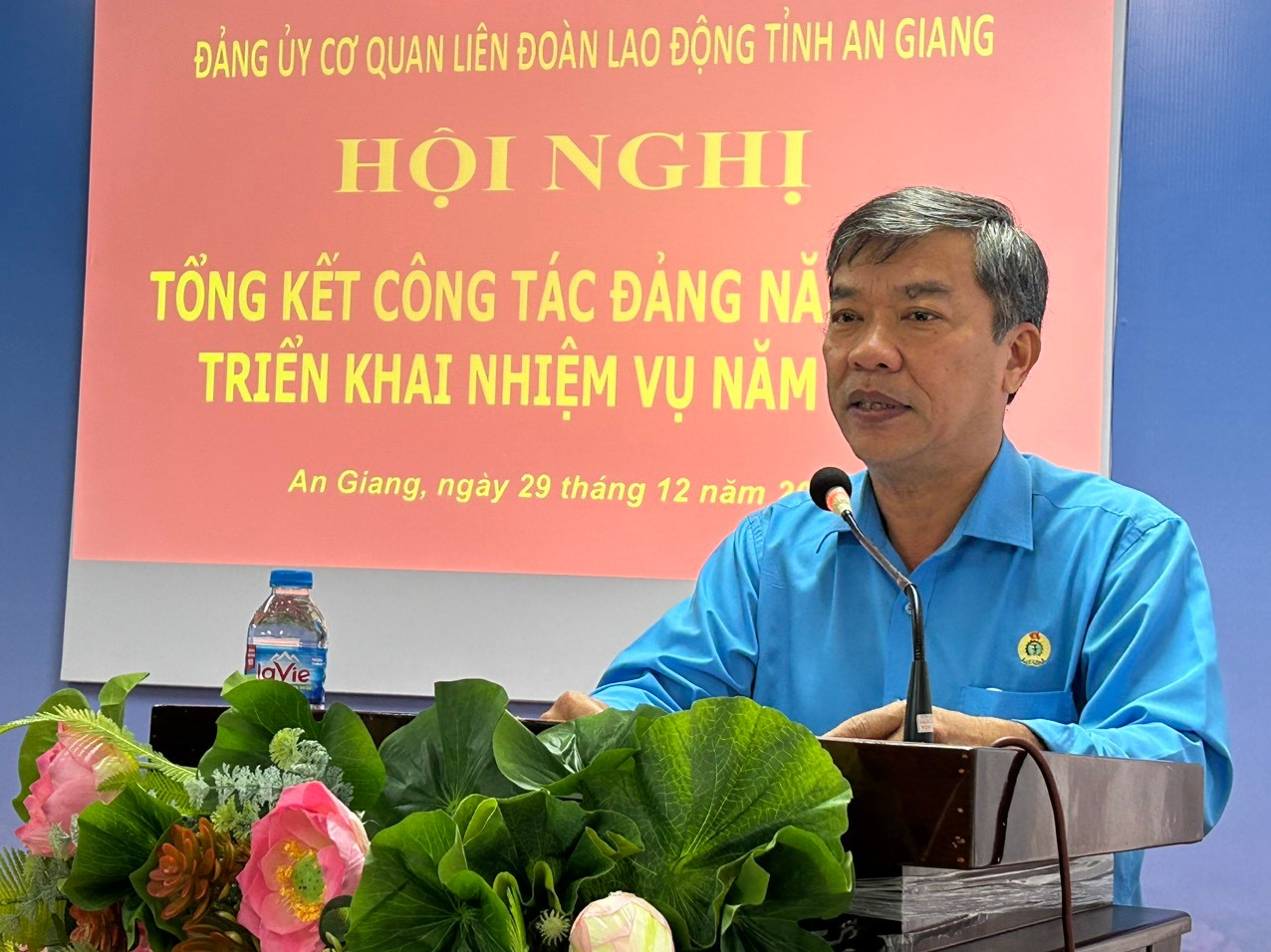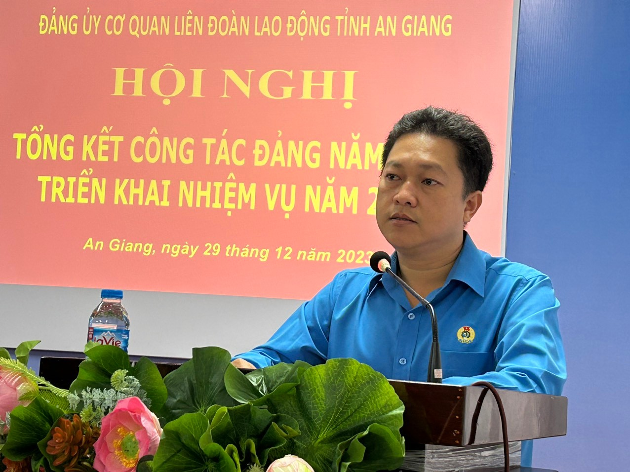Bí thư Đảng uỷ cơ quan LĐLĐ tỉnh Nguyễn Hữu Giang, phát biểu chỉ đạo tại hội nghị