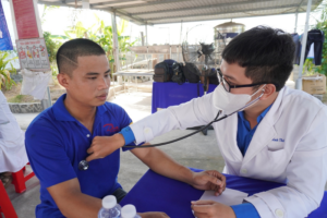 Đối với các công nhân lao động có bệnh nền, các bác sĩ còn tận tình tư vấn, hướng dẫn các tự chăm sóc sức khoẻ và đề nghị đến bệnh viện để tầm soát chuyên sâu.