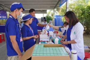 Gần 200 công nhân lao động được tư vấn, chăm sóc sức khoẻ, cấp thuốc miễn phí nhân Tháng Công nhân và Tháng hành động về An toàn vệ sinh lao động năm 2024.
