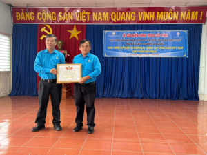 Phó Chủ tịch LĐLĐ tỉnh Nguyễn Hữu Giang trao Bằng khen cho BCH công đoàn cơ sở công ty có thành tich tiêu biểu trong thi đua chào mừng kỷ niệm 95 năm Ngày thành lập Công đoàn Việt Nam