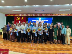 Các cô chú nguyên lãnh đạo LĐLĐ tỉnh, cán bộ LĐLĐ tỉnh chụp ảnh lưu niệm của lãnh đạo cơ quan LĐLĐ tỉnh