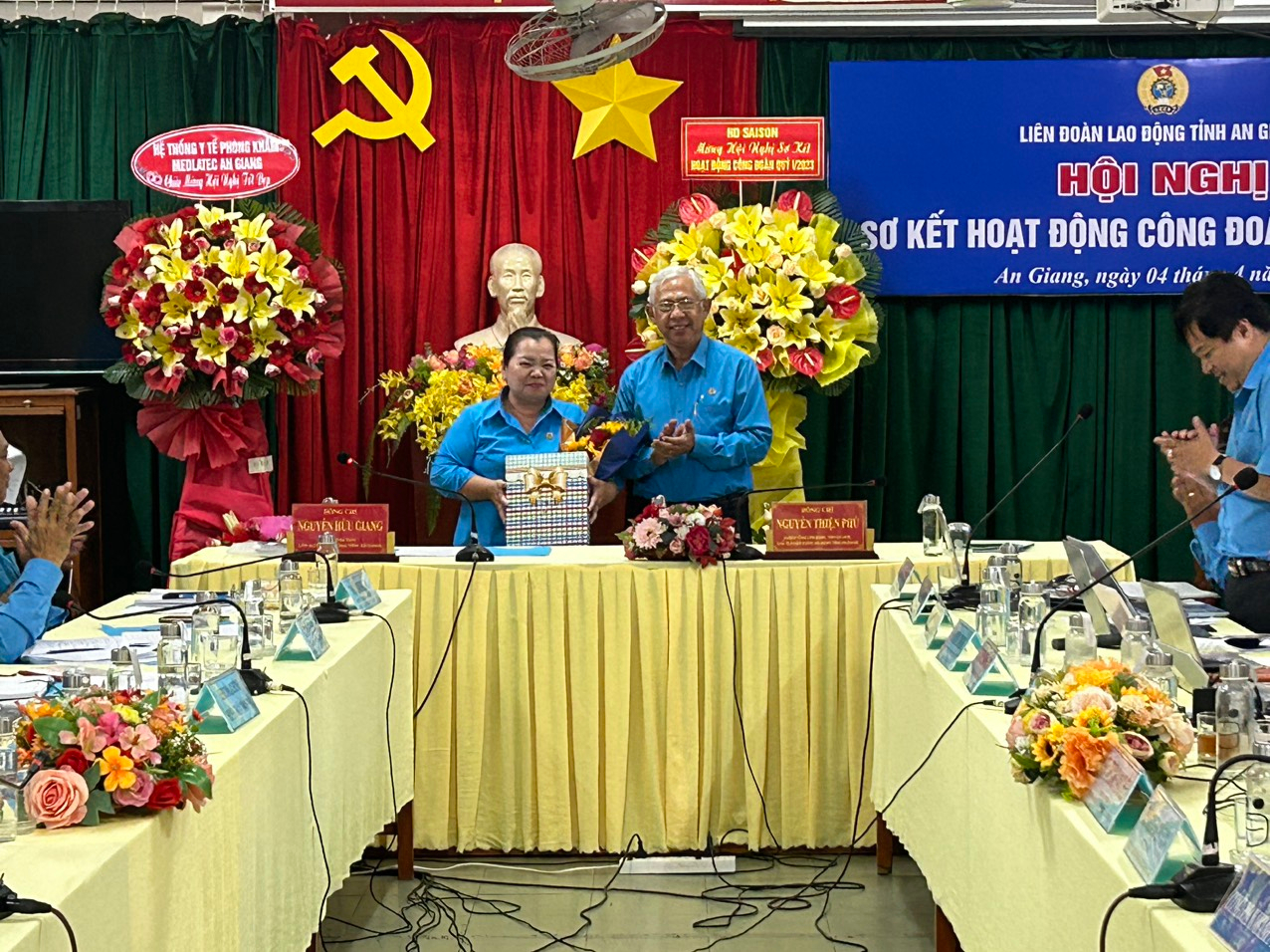 Đồng chí Nguyễn Thiện Phú – Tỉnh uỷ viên, Chủ tịch LĐLĐ tỉnh chủ trì hội nghị. Cùng tham dự có Thường trực LĐLĐ tỉnh, Trưởng, phó các Ban nghiệp vụ LĐLĐ tỉnh, Chủ tịch Công đoàn cấp trên trực tiếp cơ sở và Khối trưởng 10 Khối thi đua CĐCS trực thuộc LĐLĐ tỉnh.