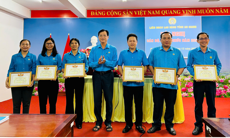 Trong khuôn khổ hội nghị, Chánh Văn phòng Lương Thị Kim Xoàn đã công bố các Quyết định tặng danh hiệu chiến sĩ thi đua cơ sở và bằng khen của Ban Chấp hành LĐLĐ tỉnh cho các tập thể, cá nhân có thành tích xuất sắc trong năm 2024.