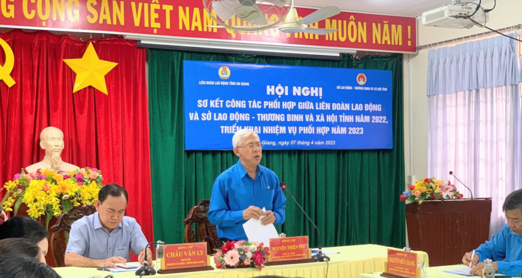 Sáng ngày 07/4/2023, Liên đoàn Lao động tỉnh phối hợp Sở LĐTB và xã hội tổ chức Hội nghị sơ kết và triển khai nhiệm vụ năm 2023. Chủ trì Hội nghị có đ/c Nguyễn Thiện Phú – TUV, Chủ tịch LĐLĐ tỉnh; đ/c Châu Văn Ly – TUV, Giám đốc Sở Lao động-Thương binh & xã hội, cùng sự tham dự của hơn 50 đại biểu thuộc bộ phận, đơn vị chuyên môn hai ngành từ tỉnh đến huyện.
