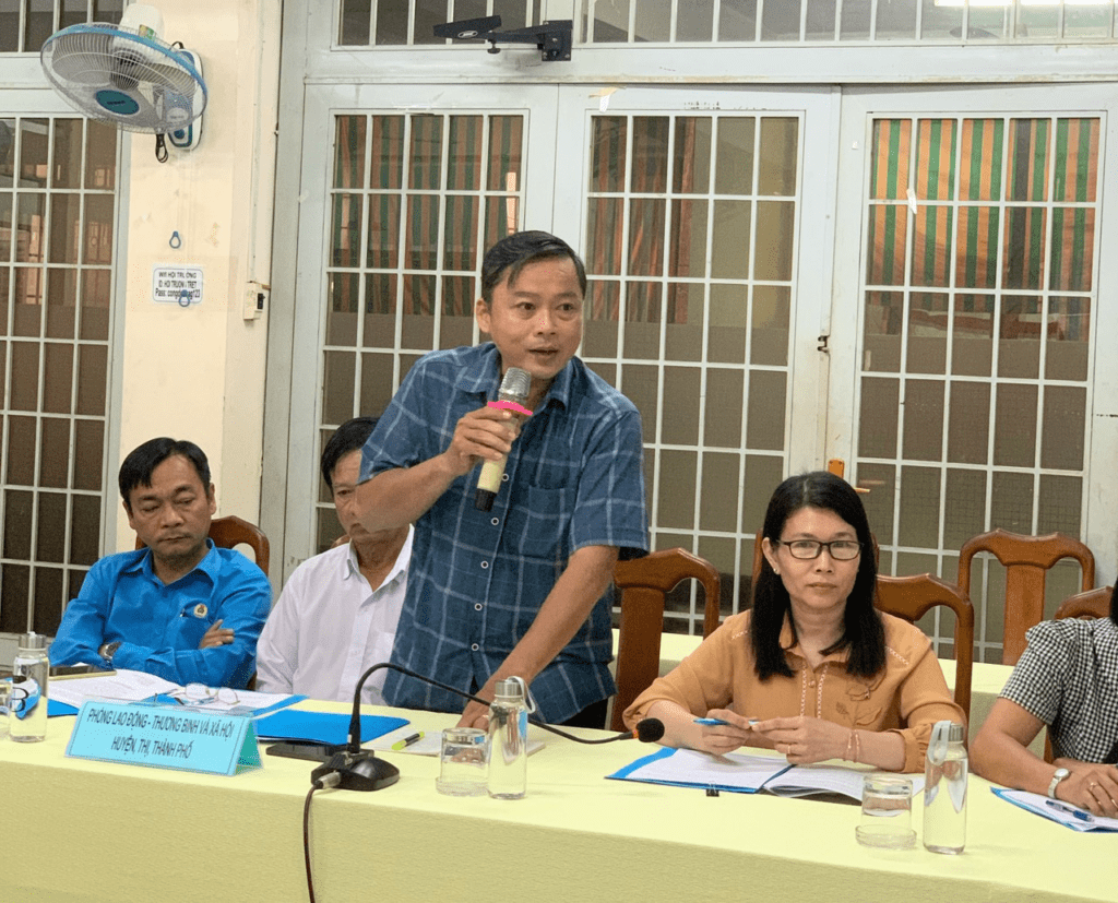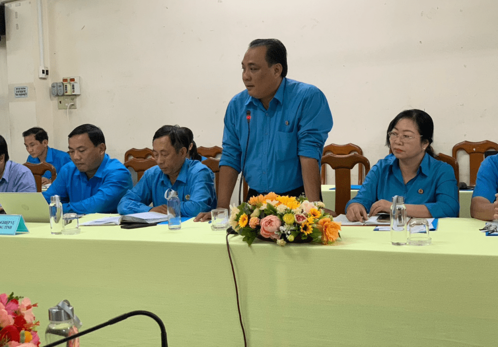 Ảnh: Đ/c Nguyễn Thiện Phú – TUV, Chủ tịch LĐLĐ tỉnh LĐLĐ tỉnh gợi ý thảo luận. |