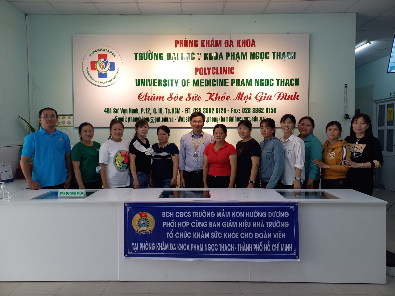 Sáng 12/7, tại Phòng khám đa khoa Trường Đại học Phạm Ngọc Thạch (thành phố Hồ Chí Minh), BCH Công đoàn phối hợp cùng Ban Giám hiệu Trường Mầm Non Hướng Dương (phường Tịnh Biên) tổ chức khám sức khỏe cho 25 đoàn viên tại đơn vị.