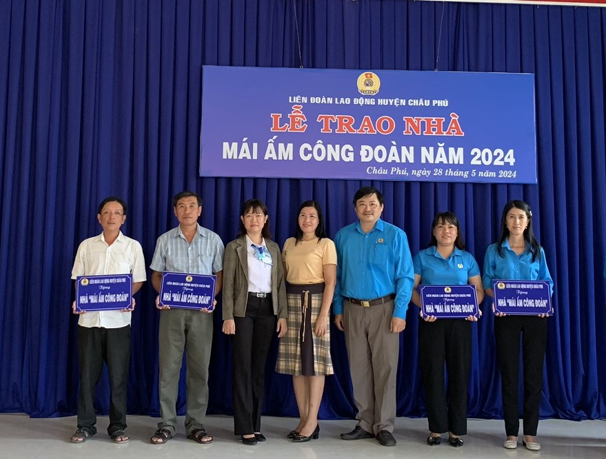 Ngày 28.5, LĐLĐ huyện Châu Phú tổ chức trao 4 căn nhà “Mái ấm Công đoàn” cho đoàn viên có hoàn cảnh khó khăn về nhà ở, trong đó 03 căn cất mới và 01 căn sữa chữa.
