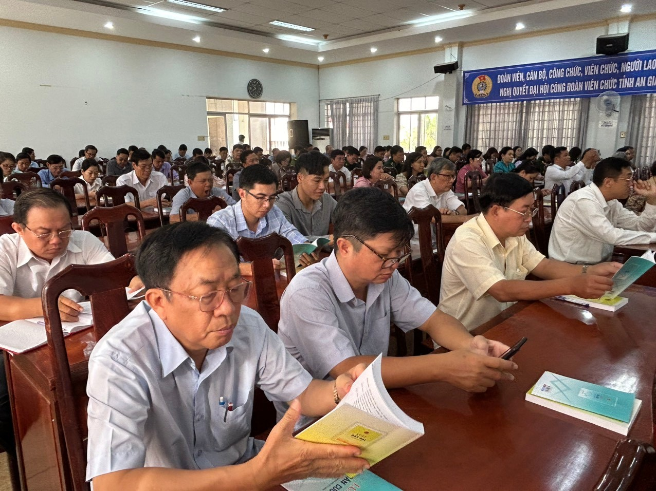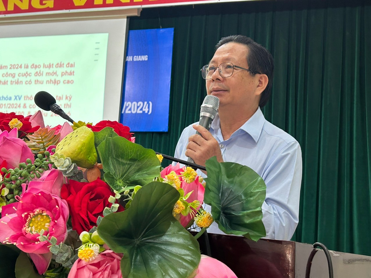 Hội nghị lần lượt nghe đồng chí Cao Thanh Sơn, Giám đốc Sở Tư pháp cùng đại diện Công an tỉnh An Giang triển khai những điểm mới, những điểm nổi bật của Luật Đất đai năm 2024 và Luật Căn cước 2023.