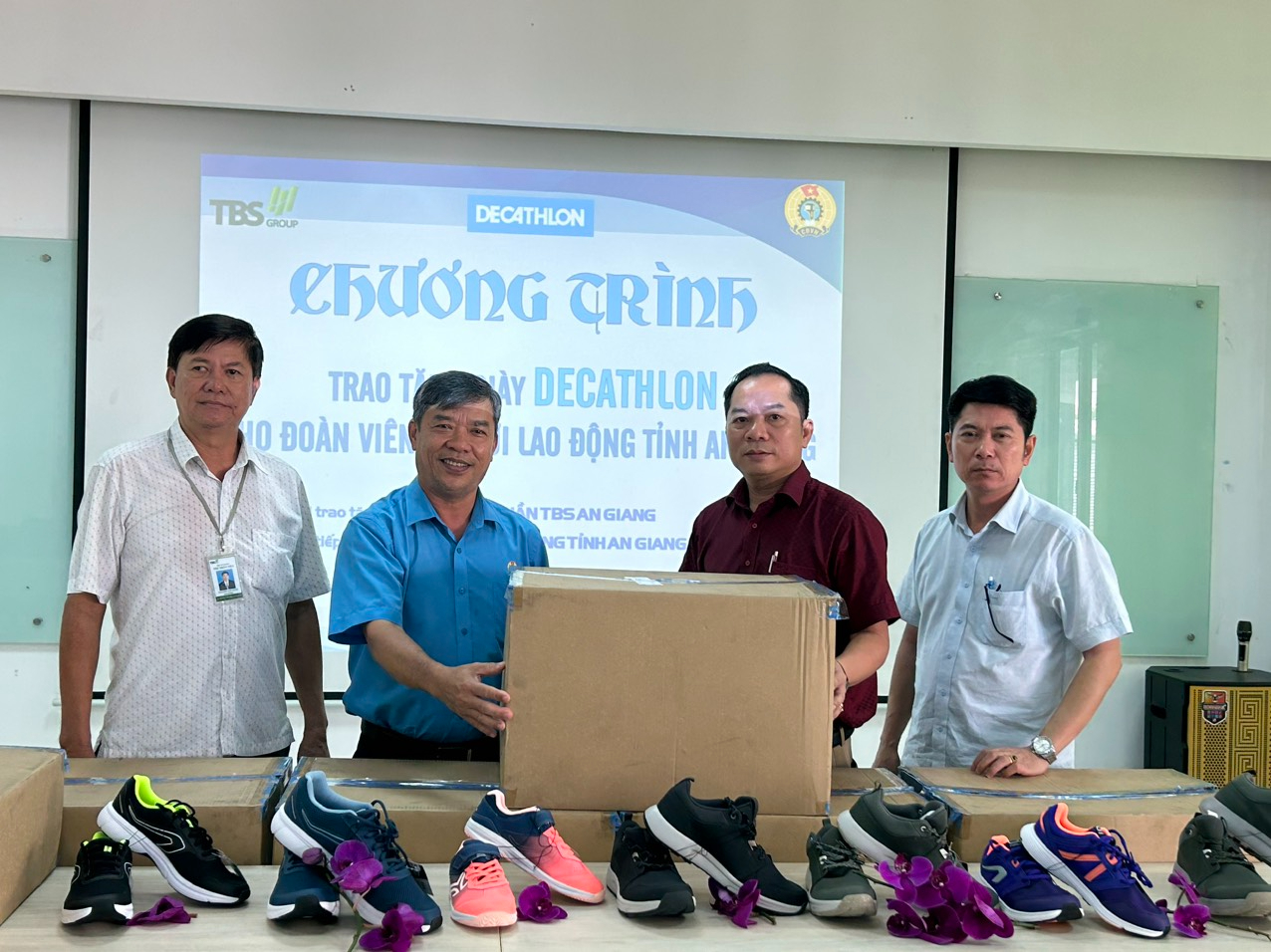 Sáng 28/6, tại Công ty CP TBS An Giang, Thường trưc Liên đoàn Lao động tỉnh và Ban Tổng Giám đốc Công ty tiến hành nghi thức trao tặng giày Decathlon cho đoàn viên, người lao động trên địa bàn tỉnh An Giang.
