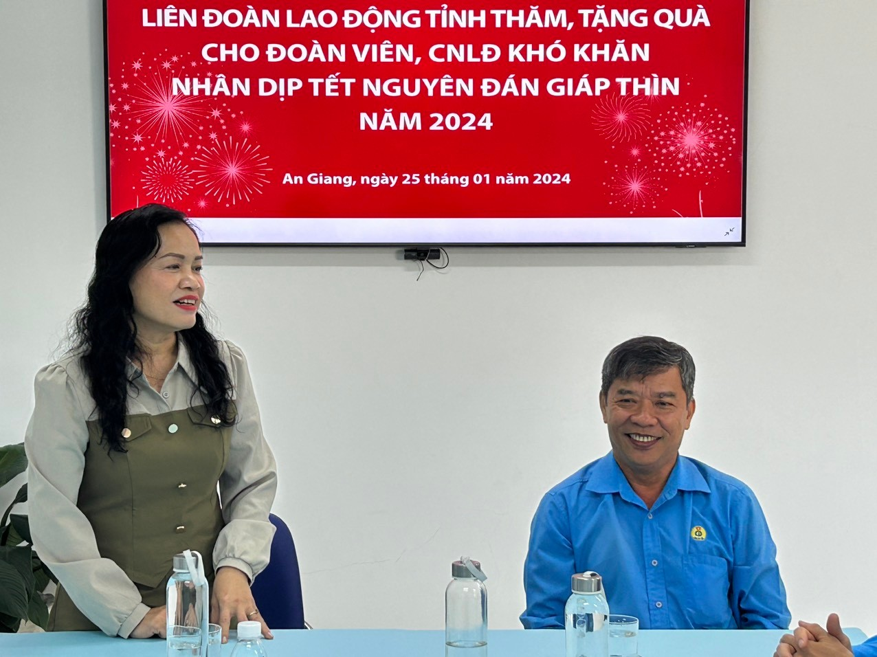 Các đoàn công tác đã đến chúc Tết các doanh nghiệp có tổ chức Công đoàn thuộc khu vực thành phố Long Xuyên, huyện Châu Thành, Châu Phú, huyện Chợ Mới và Khu Công nghiệp Bình Hoà (Châu Thành).