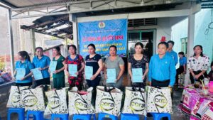 Dịp này, Liên đoàn Lao động huyện tặng mỗi đoàn viên nghiệp đoàn 01 suất quà (mỗi suất trị giá 200 nghìn đồng) và tặng Ban Chấp hành lâm thời 01 chiếc áo nhận diện của tổ chức công đoàn.