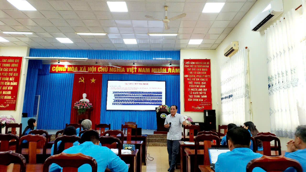 Đ/c Tô Minh Lắm trưởng Ban Chính sách pháp luật và QHLĐ LĐLĐ tỉnh báo cáo viên chuyên đề Luật Công đoàn (sửa đổi)