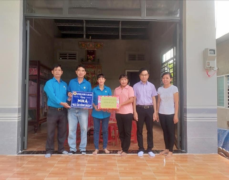 Trước đó, Liên đoàn Lao động thành phố Long Xuyên cũng trao căn nhà cho bà Nguyễn Thị Kim Luyến – Đoàn viên CĐCS cơ quan phường Mỹ Long, là Trưởng Ban Công tác Mặt Trận Khóm 4, phường Mỹ Long. Căn nhà được Liên đoàn Lao động thành phố hỗ trợ 40.000.000 đồng, địa phương vận động Mạnh thường quân hỗ trợ 20.000.000 đồng, phần còn lại do gia đình đóng góp thực hiện.