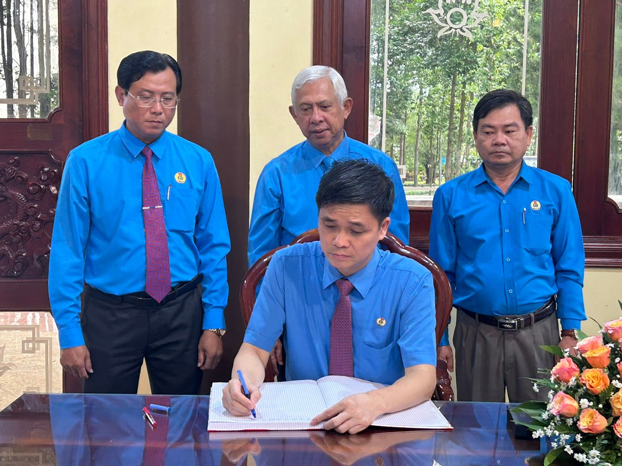 Cùng đi có Chủ tịch LĐLĐ tỉnh An Giang Nguyễn Thiện Phú, Phó Chủ tịch LĐLĐ tỉnh An Giang, Phó Chủ tịch LĐLĐ thành phố Cần Thơ và các uỷ viên Ban Thường vụ LĐLĐ tỉnh An Giang.