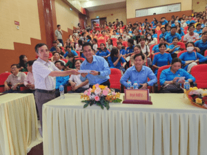 Đ/c Nguyễn Hữu Giang, Phó Chủ tịch LĐLĐ tỉnh trao Cờ và tiền thưởng cho đơn vị Giải Nhất