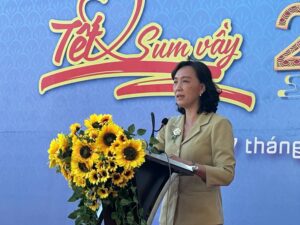 Phát biểu tại Chương trình “Tết Sum vầy – Xuân ơn Đảng” do LĐLĐ tỉnh tổ chức, đồng chí Nguyễn Thị Minh Thuý – Phó Chủ tịch Uỷ ban nhân dân tỉnh gửi lời chúc Tết đến toàn thể công nhân, viên chức, người lao động trên địa bàn thành phố. Đồng thời, biểu dương sự nỗ lực của các cấp Công đoàn tỉnh An Giang đã huy động mạnh mẽ sự tham gia, chung tay của cấp ủy, chính quyền, người sử dụng lao động và xã hội để mang phúc lợi đến đoàn viên, người lao động, tổ chức đa dạng các hoạt động văn hoá, thể thao, thăm và tặng quà cho đoàn viên, người lao động có hoàn cảnh khó khăn, triển khai nhiều giải pháp giúp ổn định tình hình quan hệ lao động tại các doanh nghiệp.