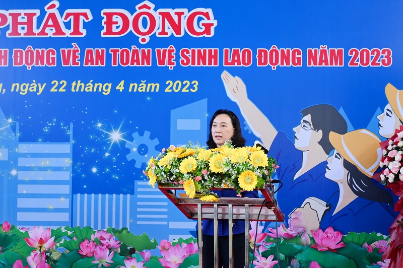 Phát biểu tại Lễ Phát động, Phó Chủ tịch Ủy ban nhân dân tỉnh Nguyễn Thị Minh Thúy gửi tới toàn thể đoàn viên, công nhân lao động toàn tỉnh những tình cảm chân thành và lời thăm hỏi ân cần, thân thiết nhất. Phó Chủ tịch Ủy ban nhân dân tỉnh Nguyễn Thị Minh Thúy thay mặt lãnh đạo tỉnh gửi lời mong muốn các cấp, các ngành, các doanh nghiệp, tổ chức công đoàn các cấp và công nhân lao động (CNLĐ) toàn tỉnh tích cực thi đua hưởng ứng Tháng Công nhân và Tháng hành động về An toàn vệ sinh lao động năm 2023 do LĐLĐ tỉnh phối hợp Sở Lao động- Thương binh và Xã hội phát động để góp phần tích cực vào công cuộc xây dựng và phát triển kinh tế – xã hội của tỉnh.