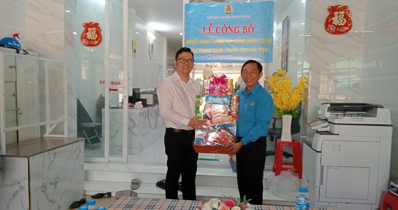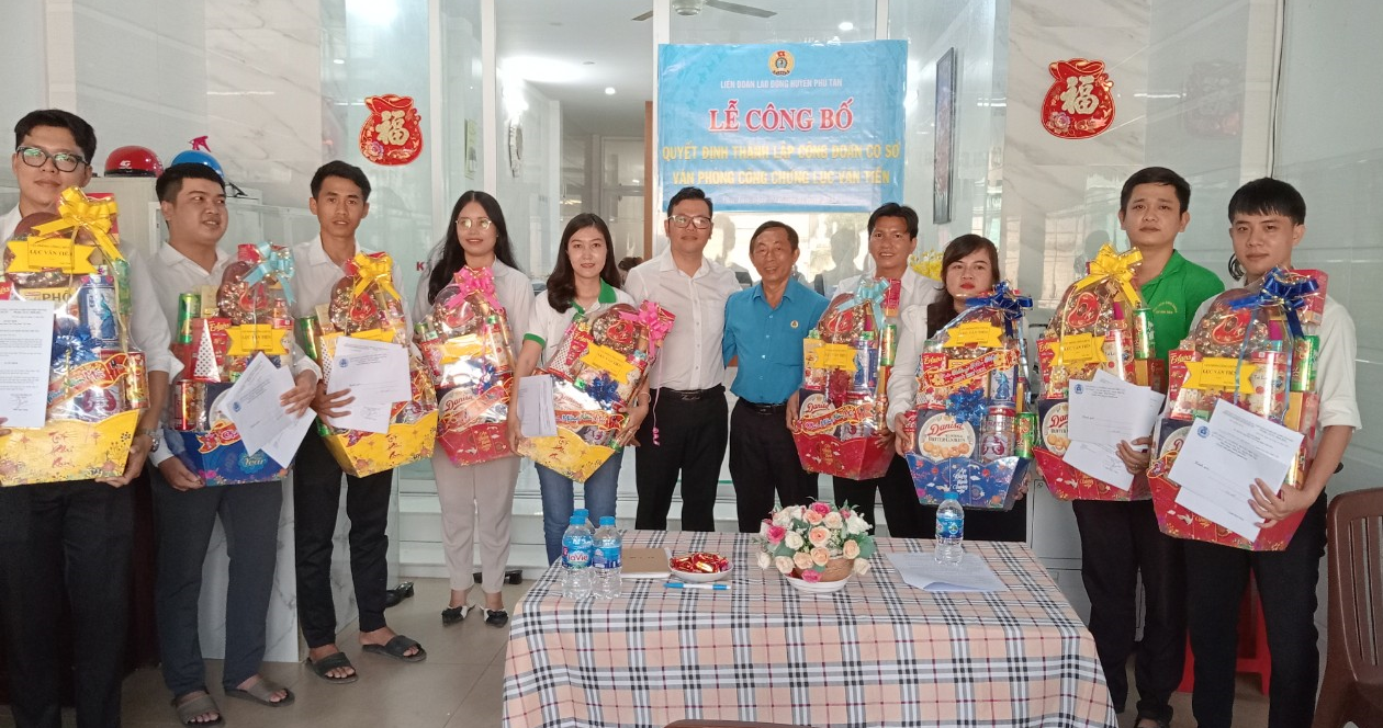Chiều 29/01, tại Văn phòng công chứng Lục Văn Tiến (số 232B, đường Tôn Đức Thắng, Thị trấn Phú Mỹ), Liên đoàn Lao động huyện Phú Tân tổ chức lễ ra mắt thành lập Công đoàn cơ sở Văn phòng công chứng Lục Văn Tiến.