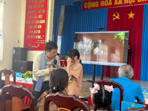 Các em thiếu nhi được tặng quà khi tham gia gameshow