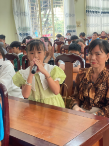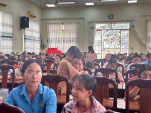Ban tổ chức trao quà cho tất cả các cháu thiếu nhi là con đoàn viên tham dự buổi nói chuyện chuyên đề