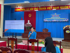 Báo cáo viên Nguyễn Lê Linh Châu – Trưởng ban Tuyên giáo – Nữ công Liên đoàn Lao động tỉnh An Giang
