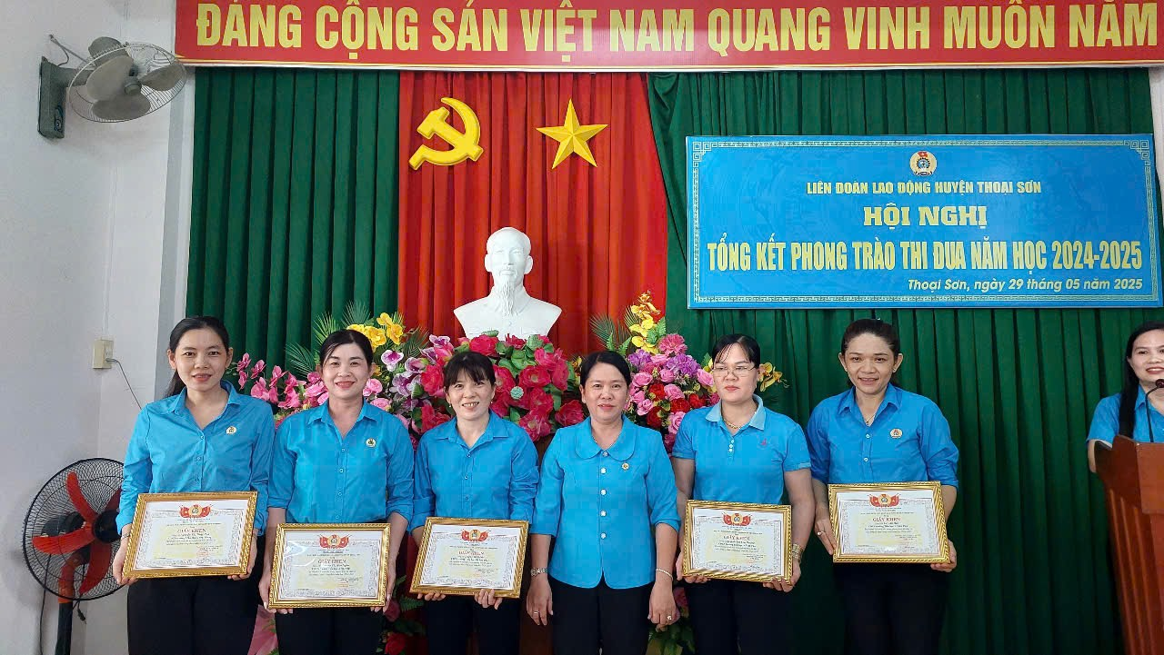 Chiều ngày 29/5/2025, Liên đoàn Lao động (LĐLĐ) huyện Thoại Sơn đã tổ chức Hội nghị tổng kết phong trào thi đua Khối trường học năm học 2024 – 2025. Tham dự hội nghị có đồng chí Đỗ Ngọc Nam – Chủ tịch LĐLĐ huyện cùng 63 đồng chí Chủ tịch Công đoàn cơ sở (CĐCS) các trường học trên địa bàn huyện.
