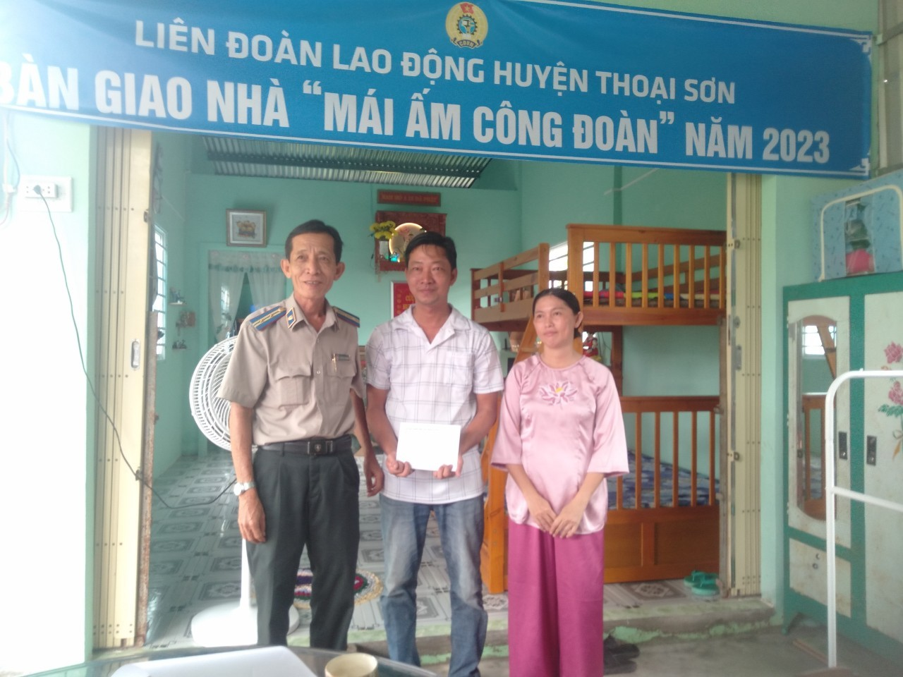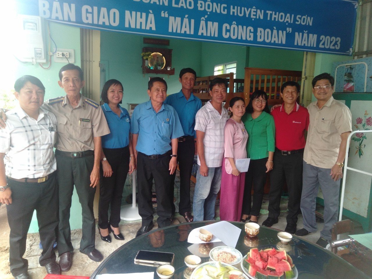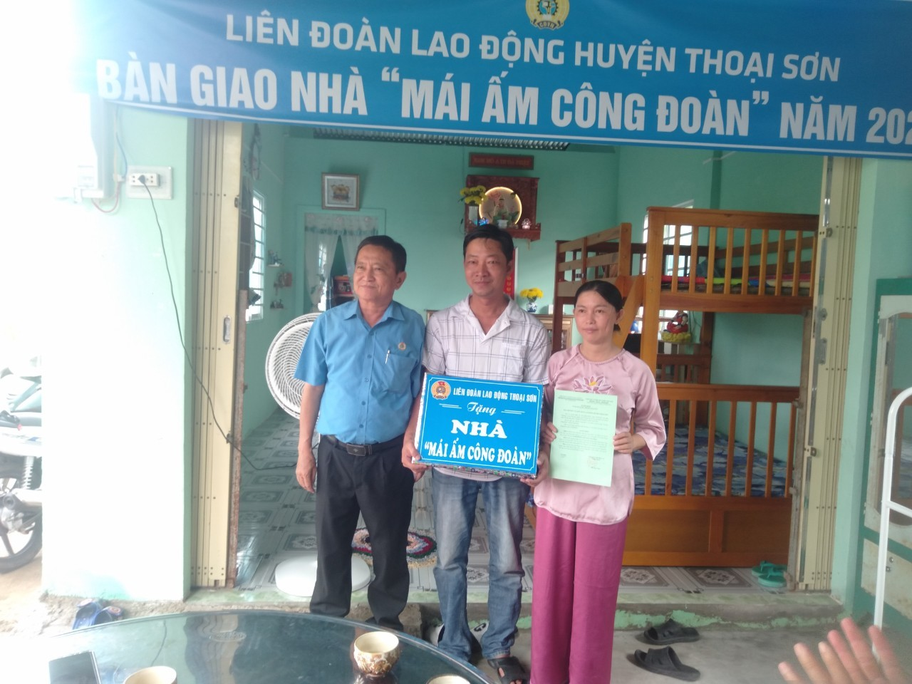 Sáng ngày 24/11, Liên đoàn Lao động huyện Thoại Sơn đã tổ chức Lễ trao nhà “Mái ấm công đoàn” cho đoàn viên Huỳnh Thị Cẩm Loan – CĐCS Trung tâm Y tế huyện Thoại Sơn, có hoàn cảnh khó khăn về nhà ở.