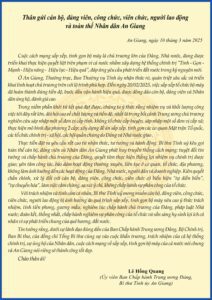 Cổng TTĐT Đảng bộ tỉnh An Giang trân trọng giới thiệu toàn văn bức thư: