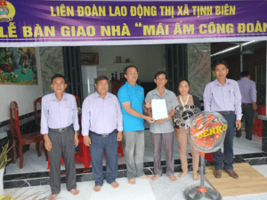 PCT LĐLĐ thị xã Tịnh Biên Ngô Thế Trung cũng lãnh đạo xã bàn giao nhà Mái ấm Công đoàn cho đoàn viên Nguyễn Phong Nghiệp