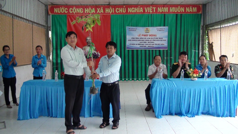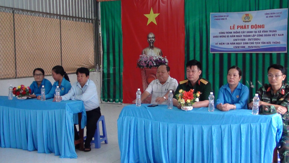 Đồng thời cảm ơn đến Đảng ủy – UBND xã Vĩnh Trung, đơn vị Tăng thiết giáp đã tạo điều kiện thống nhất cho Công đoàn phòng Kinh tế và Công đoàn Đảng ủy xã Vĩnh Trung phối hợp thực hiện Công trình “Trồng cây xanh” tại địa phương. Rất mong lãnh đạo địa phương, tiếp tục quan tâm hỗ trợ trong công tác chăm sóc, phát triển, bảo toàn nguồn cây xanh sẽ trồng và đã trồng”.