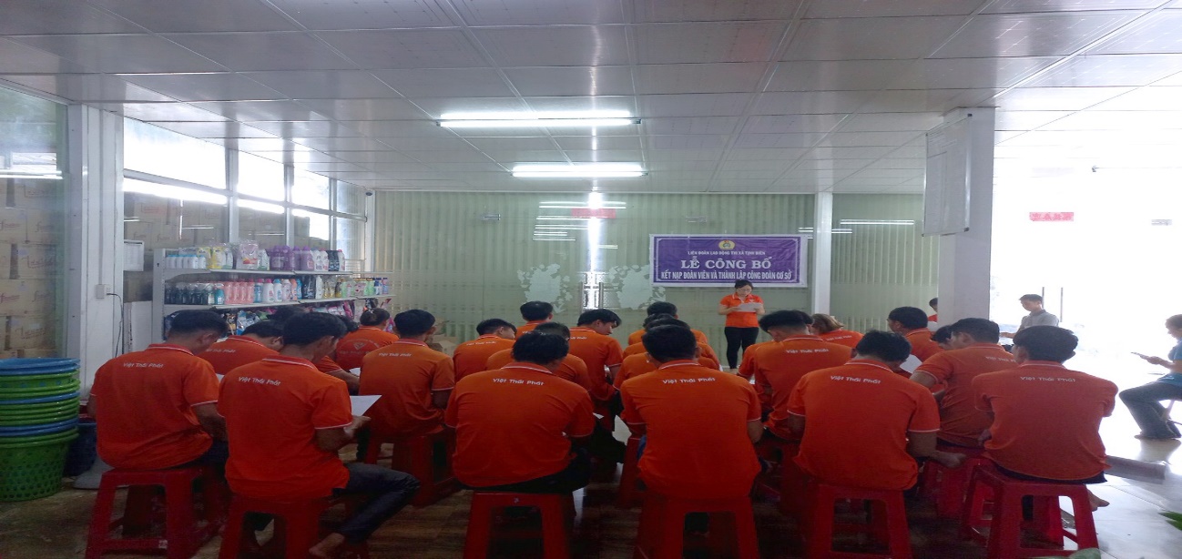Theo đó, tại buổi lễ, Liên đoàn Lao động thị xã Tịnh Biên trao Quyết định kết nạp đoàn viên Công đoàn cho 43 người lao động và thành lập Ban Chấp hành lâm thời gồm 5 thành viên, chỉ định ông Lê Thành Vũ làm Chủ tịch CĐCS.