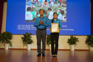 Phó Chủ tịch LĐLĐ tỉnh Nguyễn Nhật Tiến trao Giải nhất cá nhân cho thí sinh tham gia Cuộc thi ảnh nhóm 2