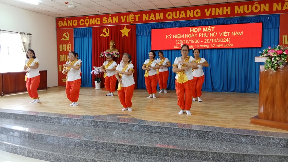 Các chị em cùng ôn lại lịch sử phong trào Phụ nữ Việt Nam và Hội Liên hiệp Phụ nữ Việt Nam qua 94 năm xây dựng và phát triển. Những tấm gương phụ nữ tiêu biểu trong 2 cuộc kháng chiến chống Pháp và Mỹ. Trong chiều dài lịch sử ấy trên mảnh đất Tri Tôn cũng đã sản sinh ra 03 nữ anh hùng lực lượng vũ trang Nhân dân là chị Phan Thị Ràng, Neáng Nghés và Lê Thị Sy làm rạng danh Phụ nữ Nam bộ với 8 chữ vàng mà bác Hồ phong tặng “Anh hùng, Bất khuất, Trung hậu, Đảm đang”. Tại buổi họp mặt, lãnh đạo các xã, thị trấn gửi lời chúc mừng, động viên nữ cán bộ, công nhân viên chức, hội viên tích cực thi đua lao động, sáng tạo, giỏi việc nước, đảm việc nhà, gắn với đẩy mạnh học tập và làm theo tư tưởng, đạo đức, phong cách Hồ Chí Minh, hoàn thành tốt nhiệm vụ, xây dựng gia đình hạnh phúc. Góp phần xây dựng hình ảnh người Phụ nữ An Giang phát triển toàn diện đáp ứng yêu cầu thời kỳ mới. Các chị em cũng được nhận quà lưu niệm và giao lưu các tiết mục văn nghệ.