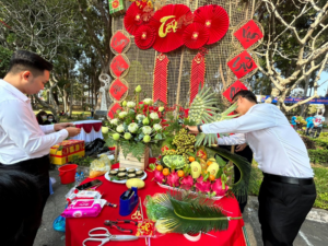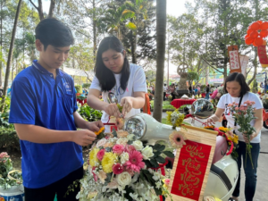 Đoàn viên rất thích thú khi được khi được trãi nghiệm Hội thi Trang trí xe hoa Xuân, Chưng bày mâm ngũ quả Tết – hoạt động mới tại Chương trình “Tết Sum vầy – Xuân chia sẻ” 2024