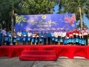 Với sự tham dự Phó Chủ tịch Uỷ ban nhân dân tỉnh Lê Văn Phước, Thường trực LĐLĐ tỉnh, cùng lãnh đạo các sở, ban, ngành tỉnh và 450 công nhân lao động, tại Lễ khai mạc Chương trình “Tết Sum vầy – Xuân chia sẻ”, LĐLĐ tỉnh đã trao 150 suất quà cho đoàn viên có hoàn cảnh khó khăn, mỗi suất trị giá 700.000 đồng (500.000 tiền mặt, quà 200.000 đồng), trao 13 căn nhà Mái ấm Công đoàn, mỗi căn trị giá 50 triệu đồng, tổ chức Chương trình rút thăm may mắn các suất quà thiết yếu cho đoàn viên, người lao động, trị giá gần 10 triệu đồng. Đồng thời, LĐLĐ tỉnh nhận bảng tượng trưng hỗ trợ 1.000 suất quà Tết từ Quỹ Vì người nghèo của tỉnh thông qua Uỷ ban Mặt trận Tổ quốc Việt Nam tỉnh; trao các bảng tượng trưng phân bổ các suất quà Tết cho đoàn viên, người lao động tại các công đoàn cấp trên trực tiếp cơ sở.