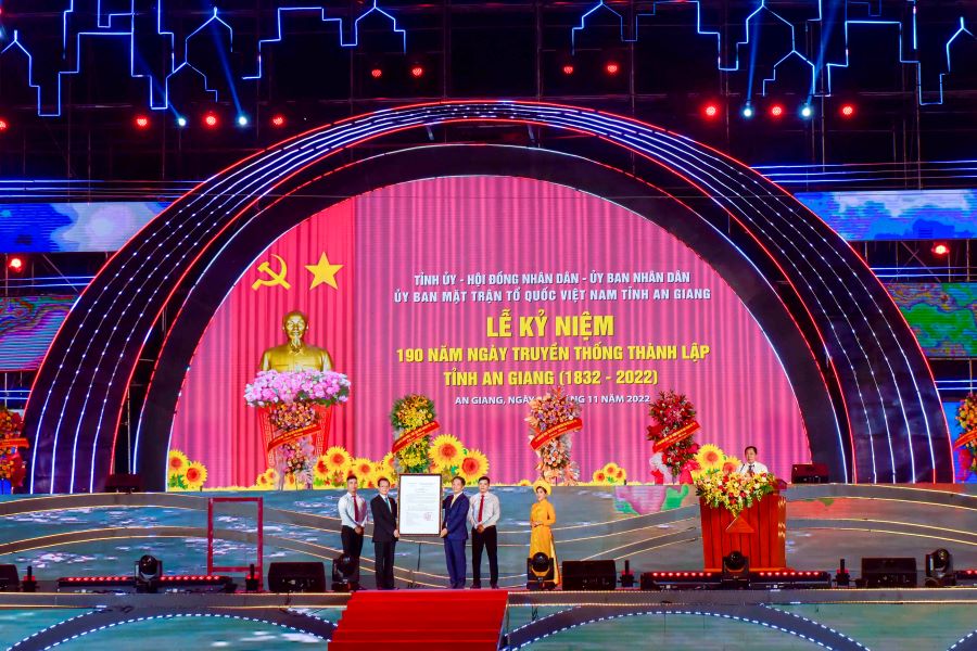 Là nơi địa đầu biên giới Tây Nam, đón nhận dòng Mê Kông hùng vĩ chảy vào Việt Nam, An Giang đã chứng kiến nhiều biến động lịch sử quan trọng. Từng là trung tâm của nền văn hóa Óc Eo xưa, An Giang hiện nay là một trong bốn tỉnh thuộc vùng kinh tế trọng điểm của khu vực Đồng bằng sông Cửu Long (ĐBSCL). Trải qua lịch sử 191 năm hình thành và phát triển, vùng đất và con người An Giang đã không ngừng bồi đắp và làm phong phú thêm những giá trị truyền thống tốt đẹp của dân tộc, miệt mài sáng tạo những thành quả mới để khẳng định vị thế trên bản đồ đất nước. Đó là một hành trình xây đắp và kiến tạo để từng bước hiện thực hóa mục tiêu trở thành tỉnh có quy mô nền kinh tế thuộc nhóm đầu của khu vực ĐBSCL và cao hơn mức trung bình của cả nước.